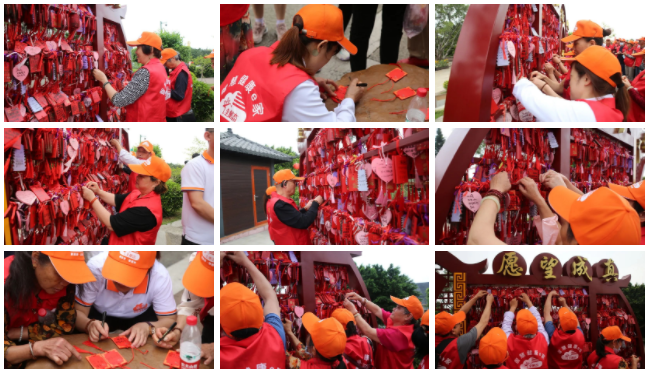 塔腳下設(shè)有心愿墻與姻緣樹,從古至今許多官家百姓在蓮花塔下虔誠許愿,祈禱國家風(fēng)調(diào)雨順、國泰民安;祈求家庭和睦、安居樂業(yè)。叔叔阿姨們聽完介紹后,也紛紛在塔下虔誠祈禱,求得心想事成。